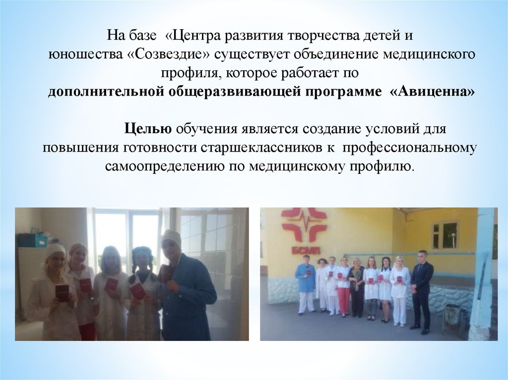 На базе «Центра развития творчества детей июношества «Созвездие» существует объединение медицинского