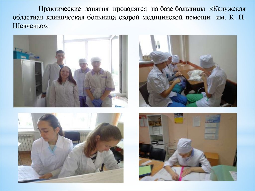 Практические занятия проводятся на базе больницы «Калужскаяобластная клиническая больница скорой медицинской помощи им. К. Н.