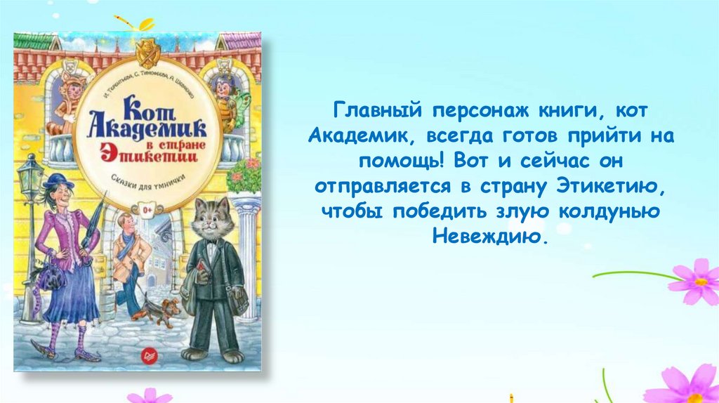 Главный персонаж книги, котАкадемик, всегда готов прийти на