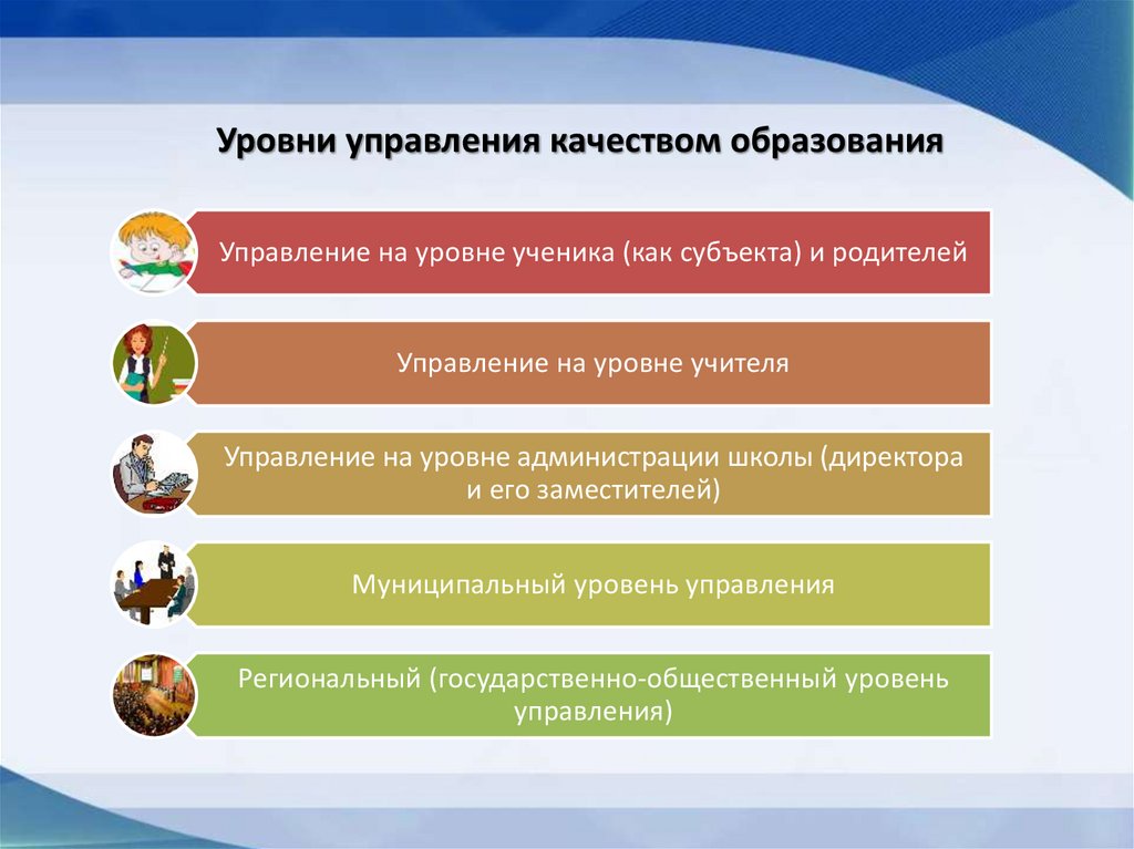 Уровни управления качеством образованияУправление на уровне ученика (как субъекта) и родителей