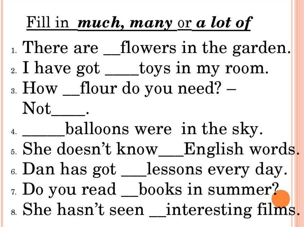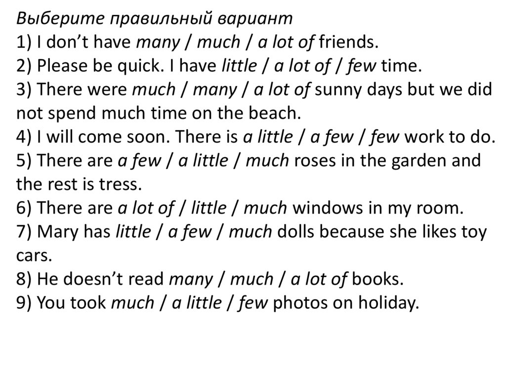 Выберите правильный вариант1) I don’t have many / much / a lot of friends.