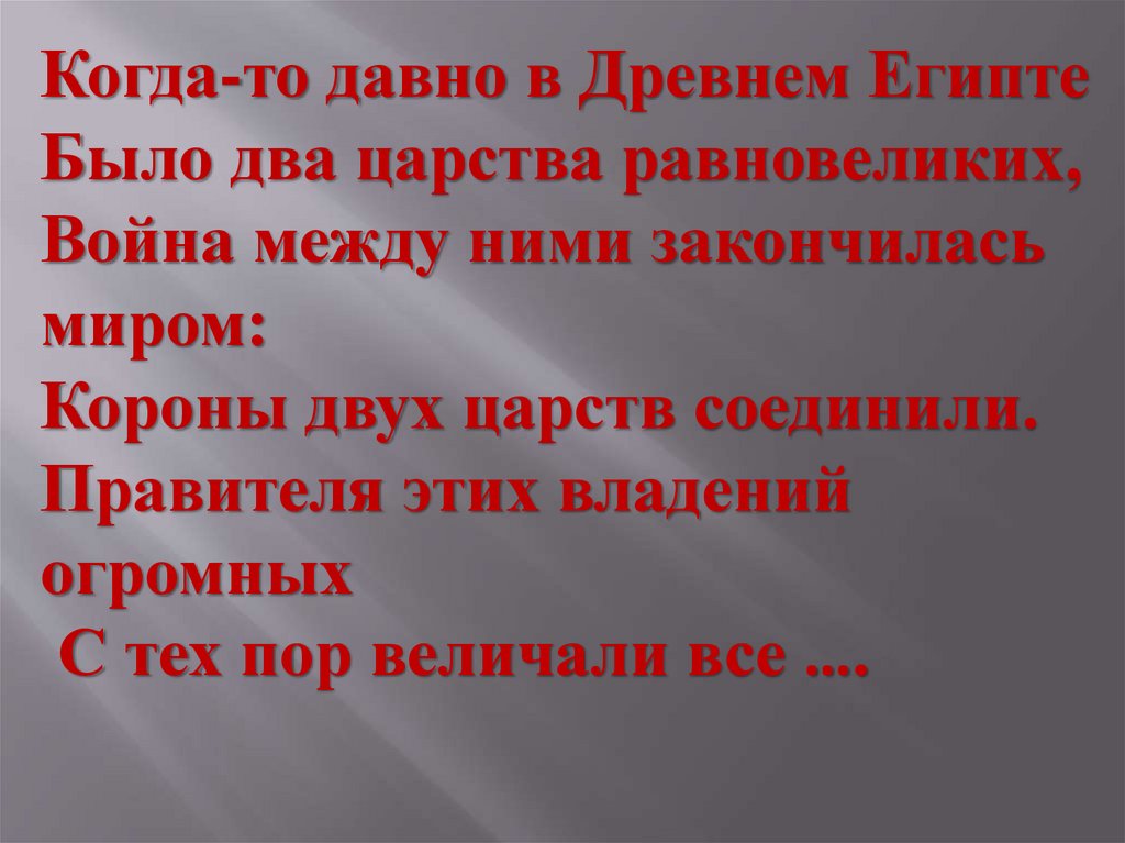 Когда-то давно в Древнем ЕгиптеБыло два царства равновеликих,