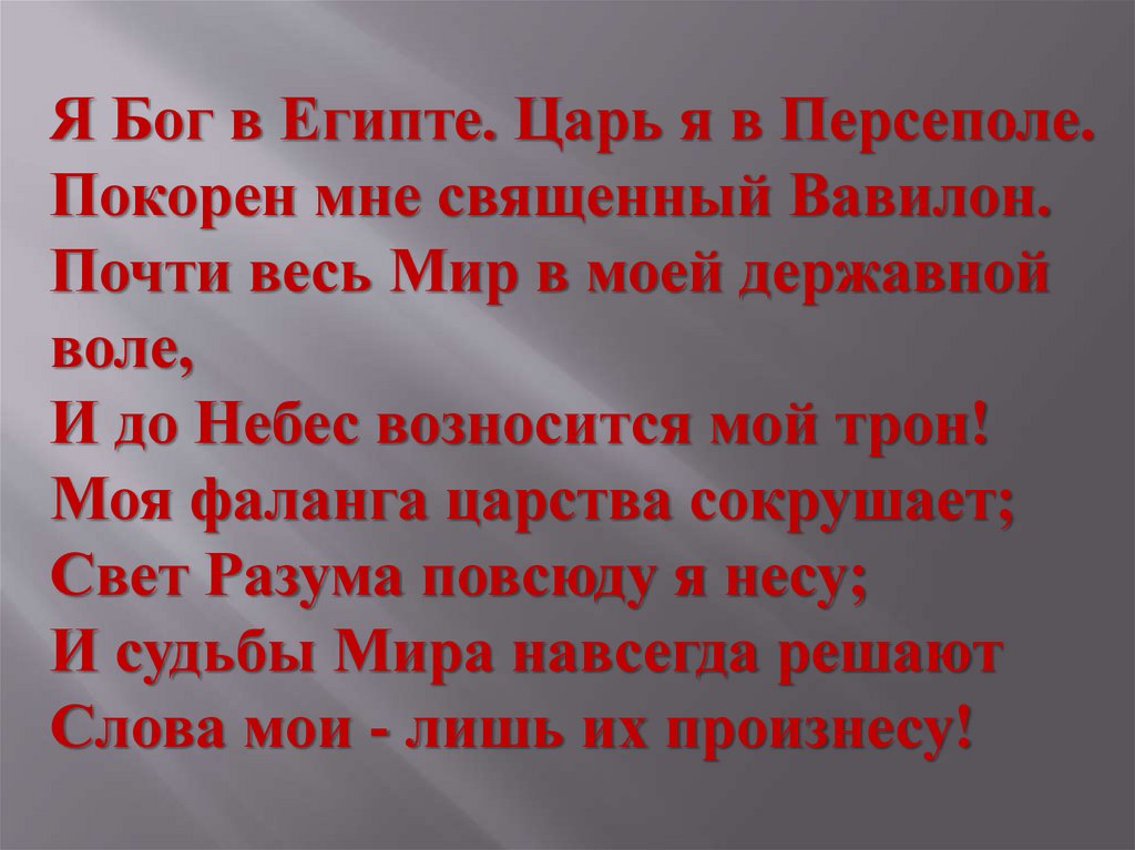 Я Бог в Египте. Царь я в Персеполе.Покорен мне священный Вавилон.