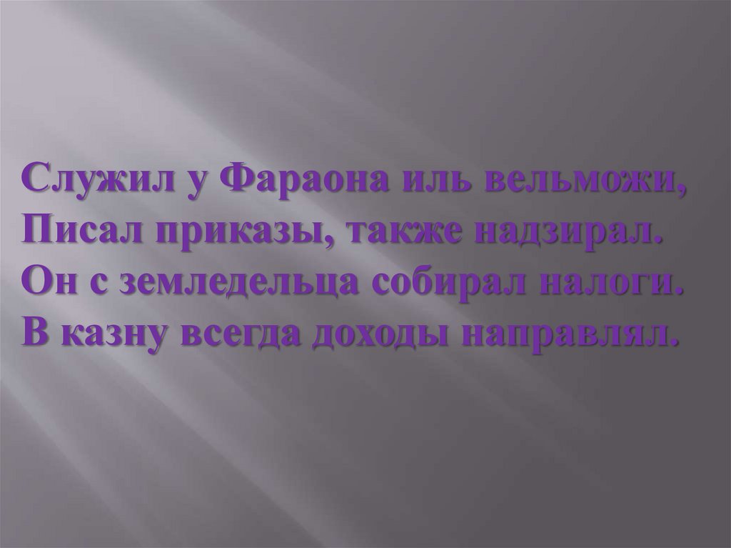 Служил у Фараона иль вельможи,Писал приказы, также надзирал.