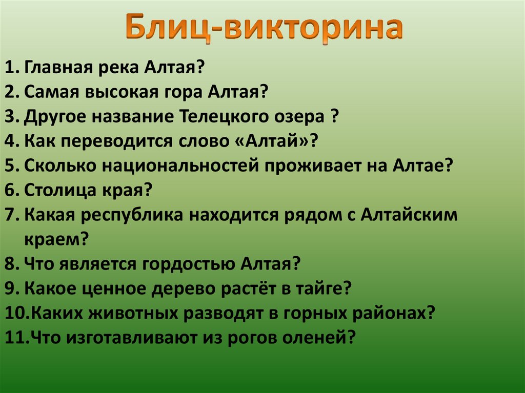 1. Главная река Алтая?2. Самая высокая гора Алтая?