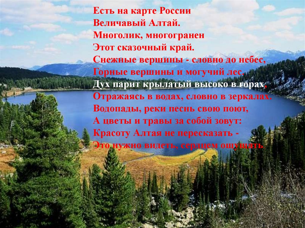 Красоту Алтая не пересказать Это нужно видеть, сердцем ощущать.