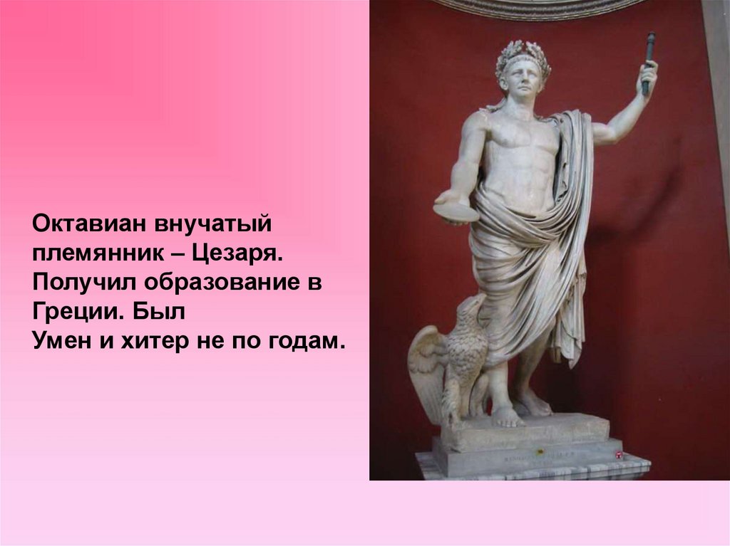 Октавиан внучатыйплемянник – Цезаря.