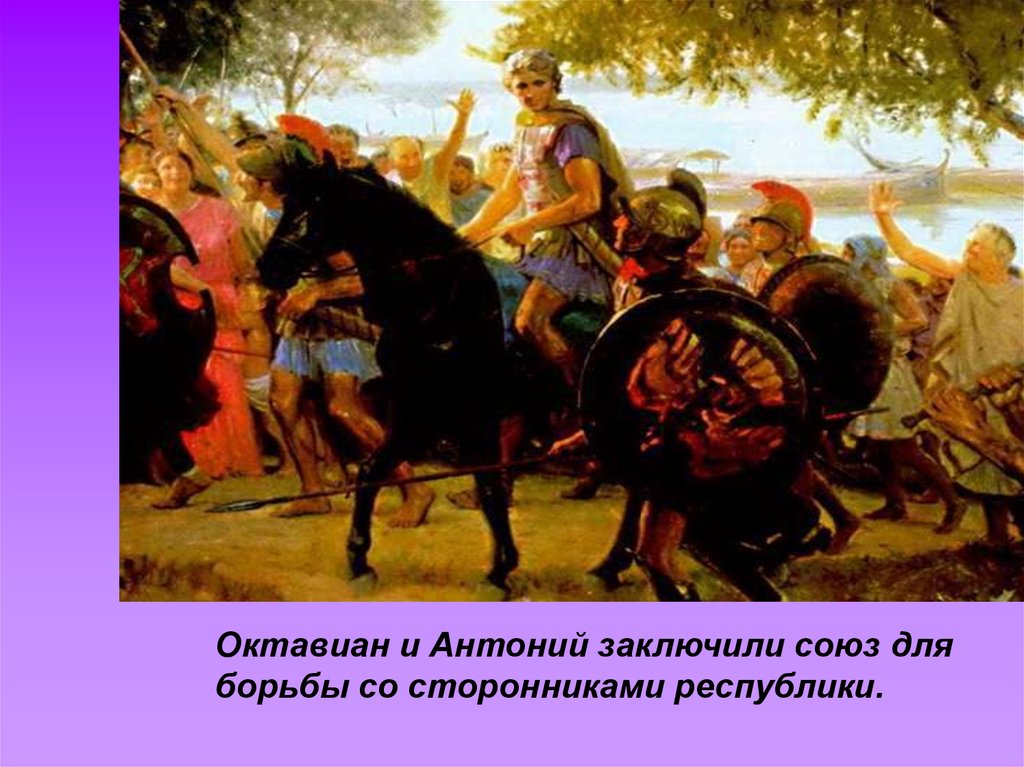 Октавиан и Антоний заключили союз дляборьбы со сторонниками республики.