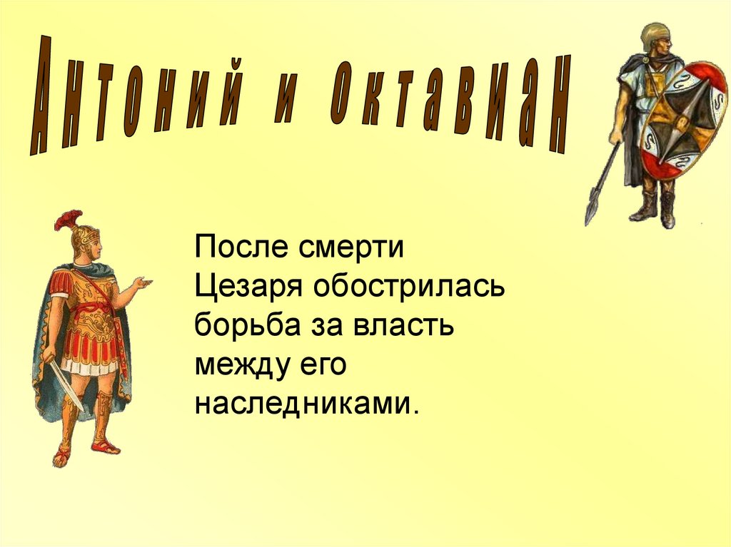 1. Смерть Гая Юлия Цезаря.2. Борьба за власть.