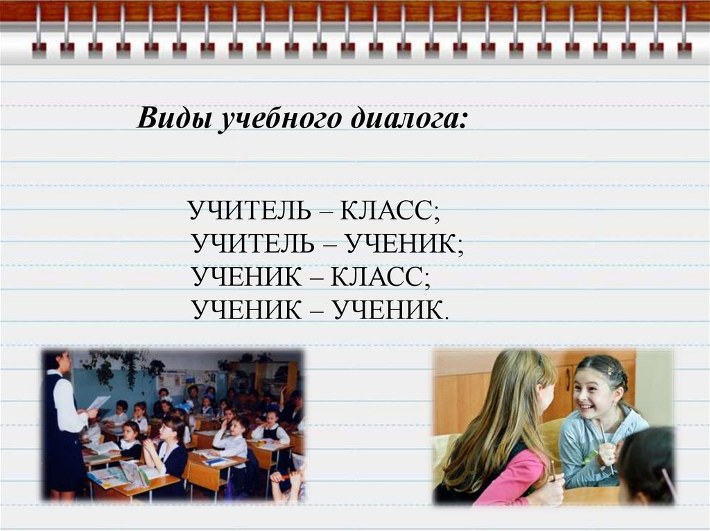 Виды учебного диалога:УЧИТЕЛЬ – КЛАСС;