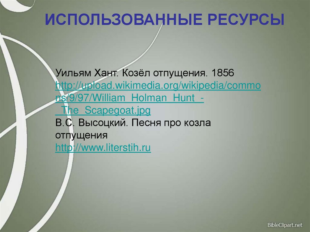 ИСПОЛЬЗОВАННЫЕ РЕСУРСЫУильям Хант. Козёл отпущения. 1856