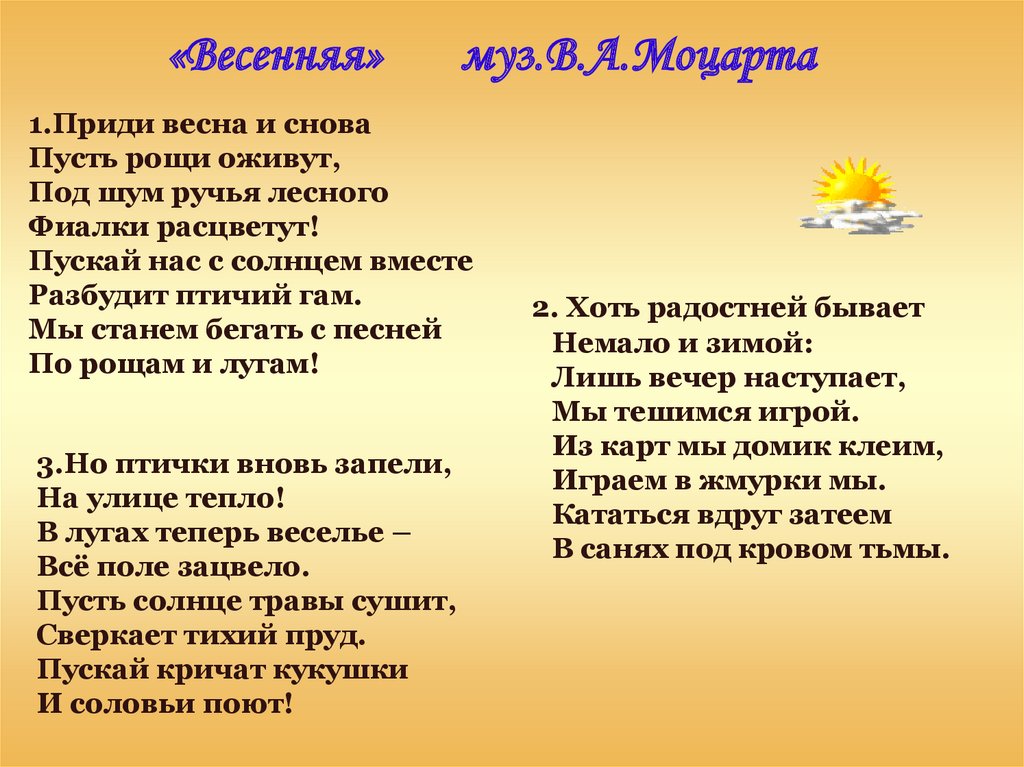 «Весенняя»муз.В.А.Моцарта