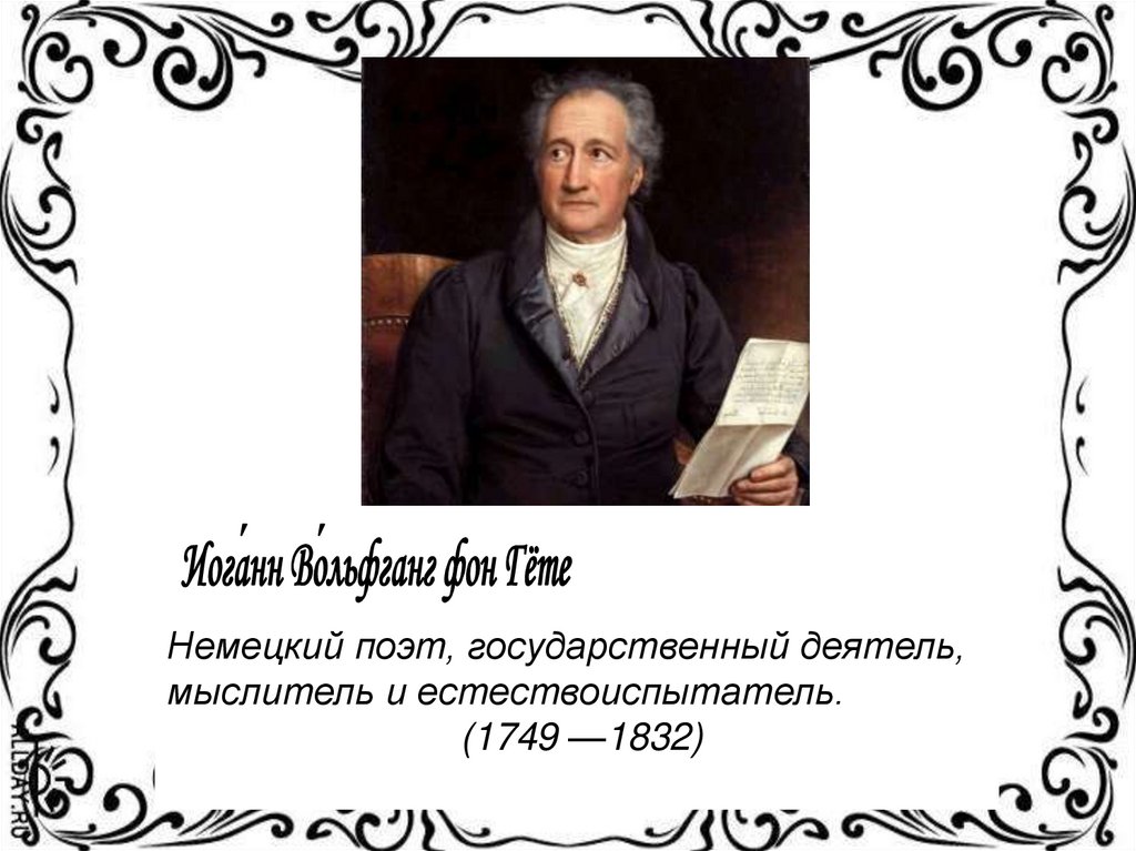 Немецкий поэт, государственный деятель,мыслитель и естествоиспытатель.
