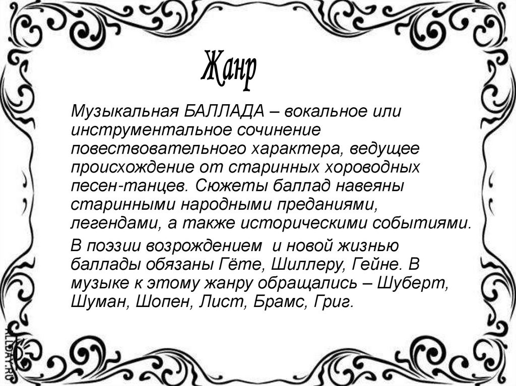 Музыкальная БАЛЛАДА – вокальное илиинструментальное сочинение