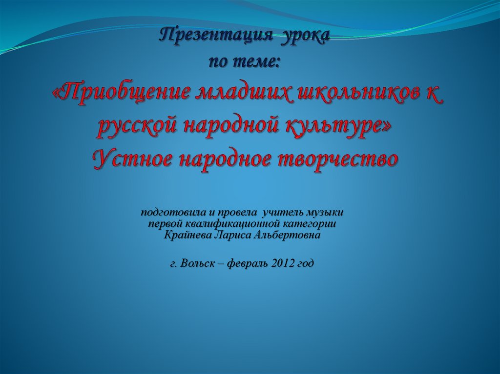 1. Презентация урока по теме: «Приобщение младших школьников к русской народной культуре» Устное народное творчество