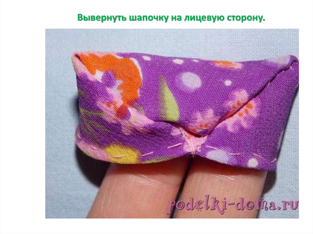 Вывернуть шапочку на лицевую сторону.13.