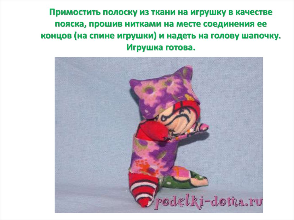 концов (на спине игрушки) и надеть на голову шапочку.