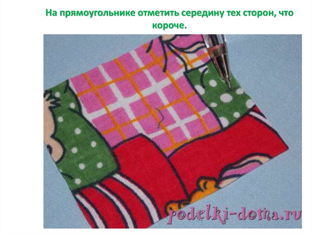На прямоугольнике отметить середину тех сторон, чтокороче.