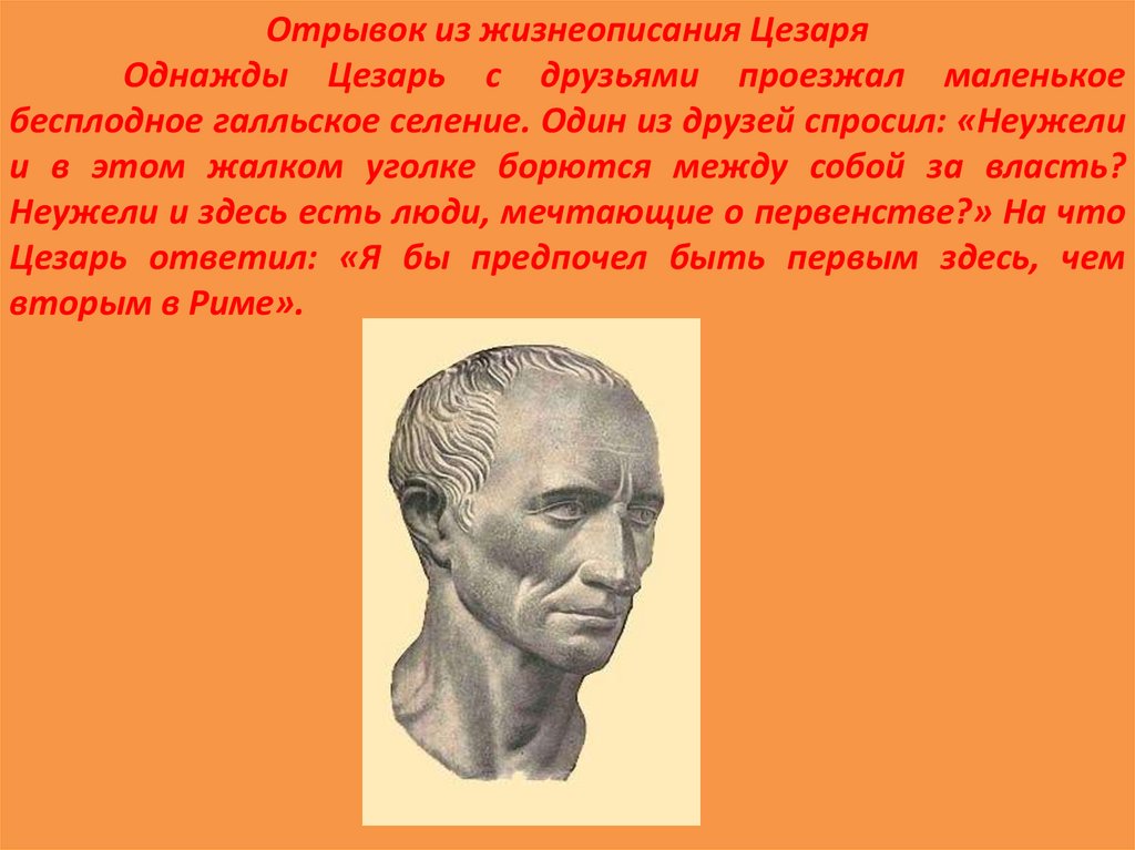 Отрывок из жизнеописания ЦезаряОднажды Цезарь с друзьями проезжал маленькое