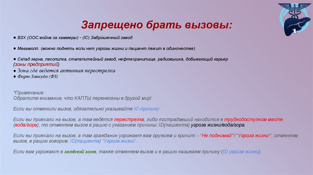 Исключение: Можно выезжать на вызовы, если есть разрешение старшего состава отдела АБ,