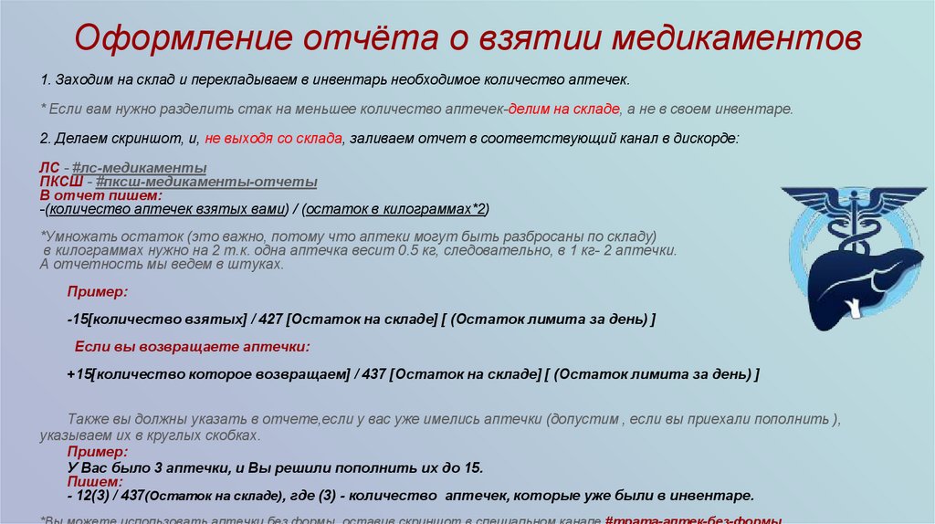 *Вы можете использовать аптечки без формы, оставив скриншот в специальном канале #трата-аптек-без-формы