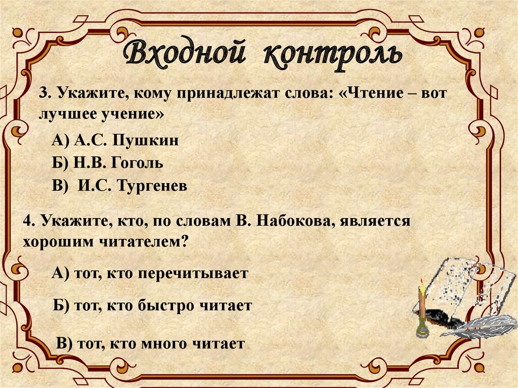 Входной контроль3. Укажите, кому принадлежат слова: «Чтение – вот