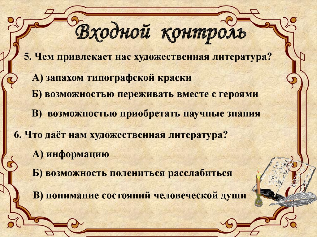 Входной контроль5. Чем привлекает нас художественная литература?