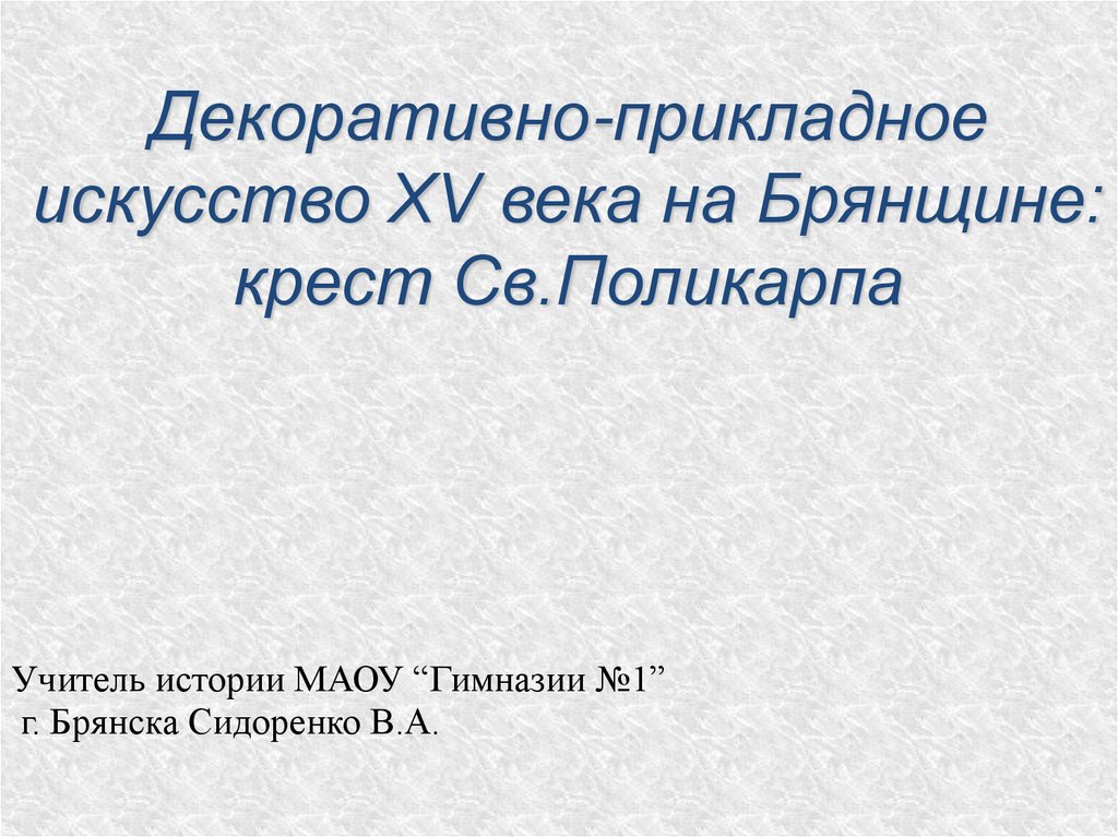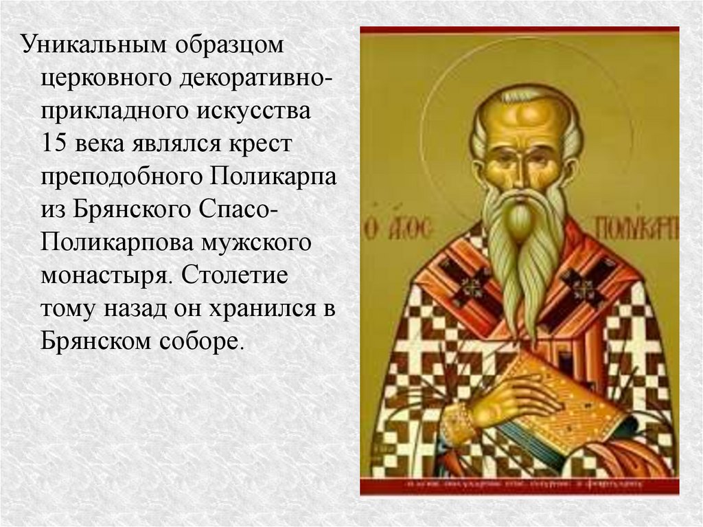 Декоративно-прикладное искусство XV века на Брянщине: крест Св. Поликарпа