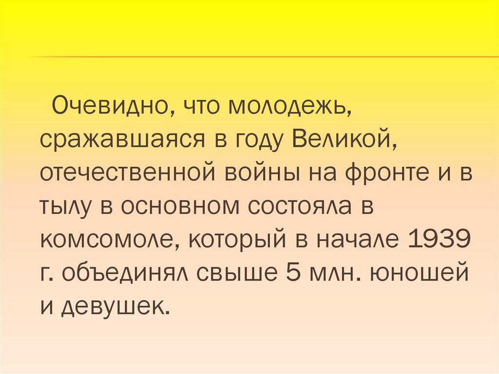Очевидно, что молодежь,сражавшаяся в году Великой,