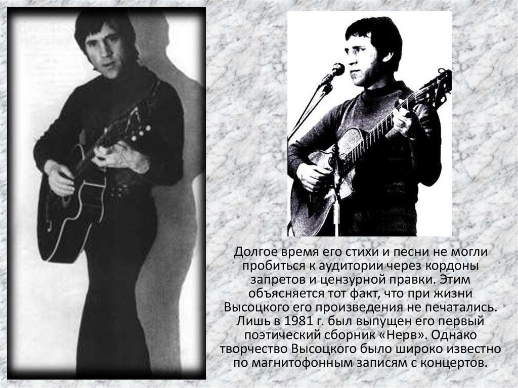 Долгое время его стихи и песни не моглипробиться к аудитории через кордоны