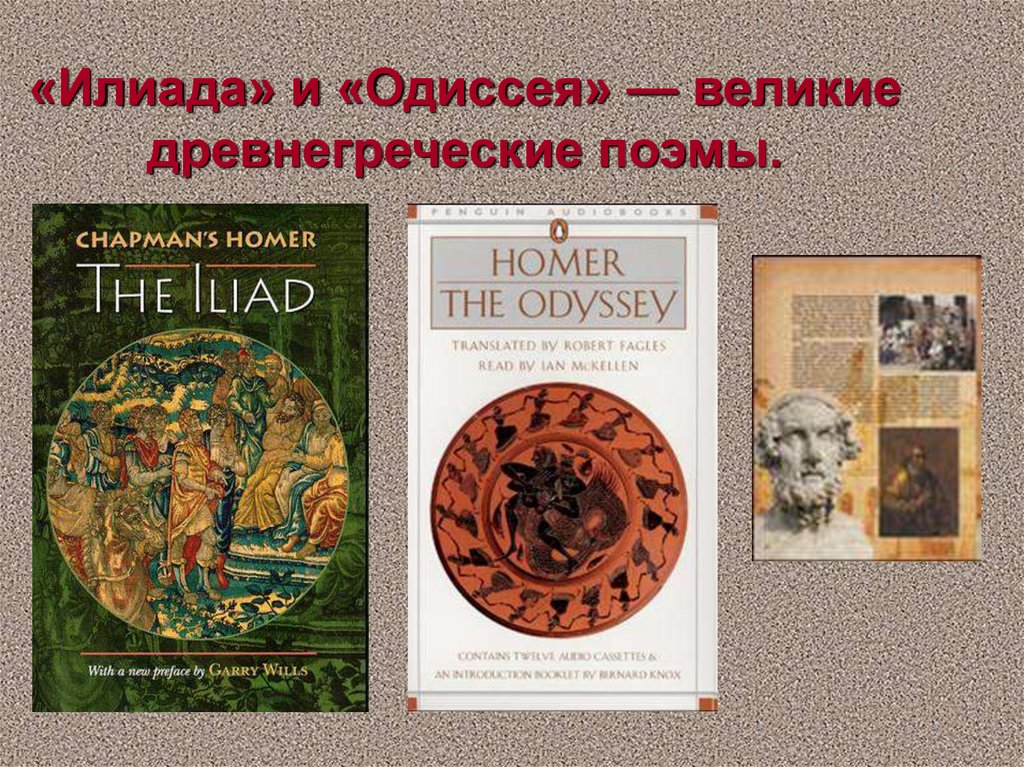 «Илиада» и «Одиссея» — великиедревнегреческие поэмы.