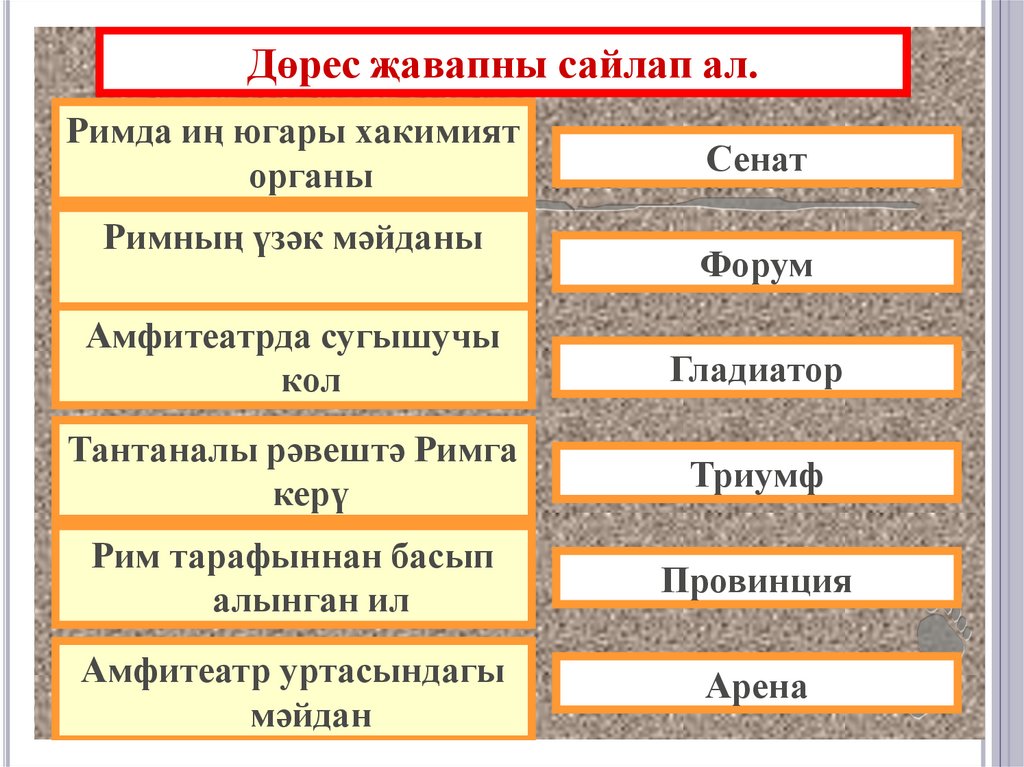 Дөрес җавапны сайлап ал.Римда иң югары хакимият