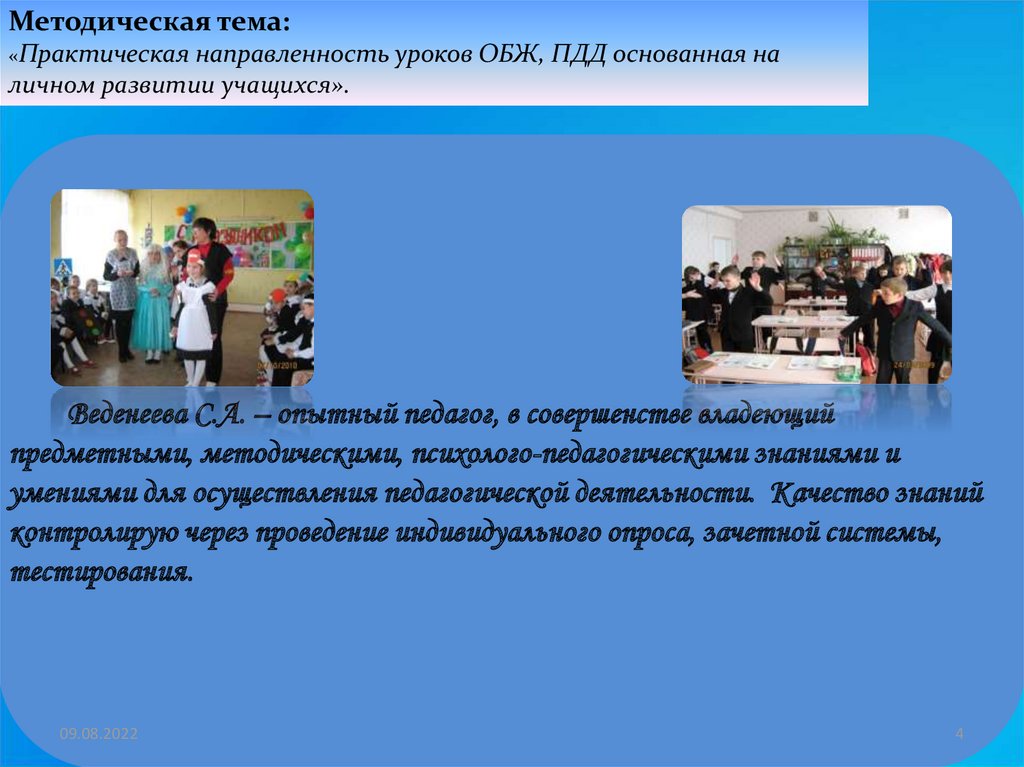 1. Применение здоровьесберегающих технологий на уроках ОБЖ, ПДД. (Веденеева С.А. МБОУ СОШ №4 Лениногорск преподаватель-организатор