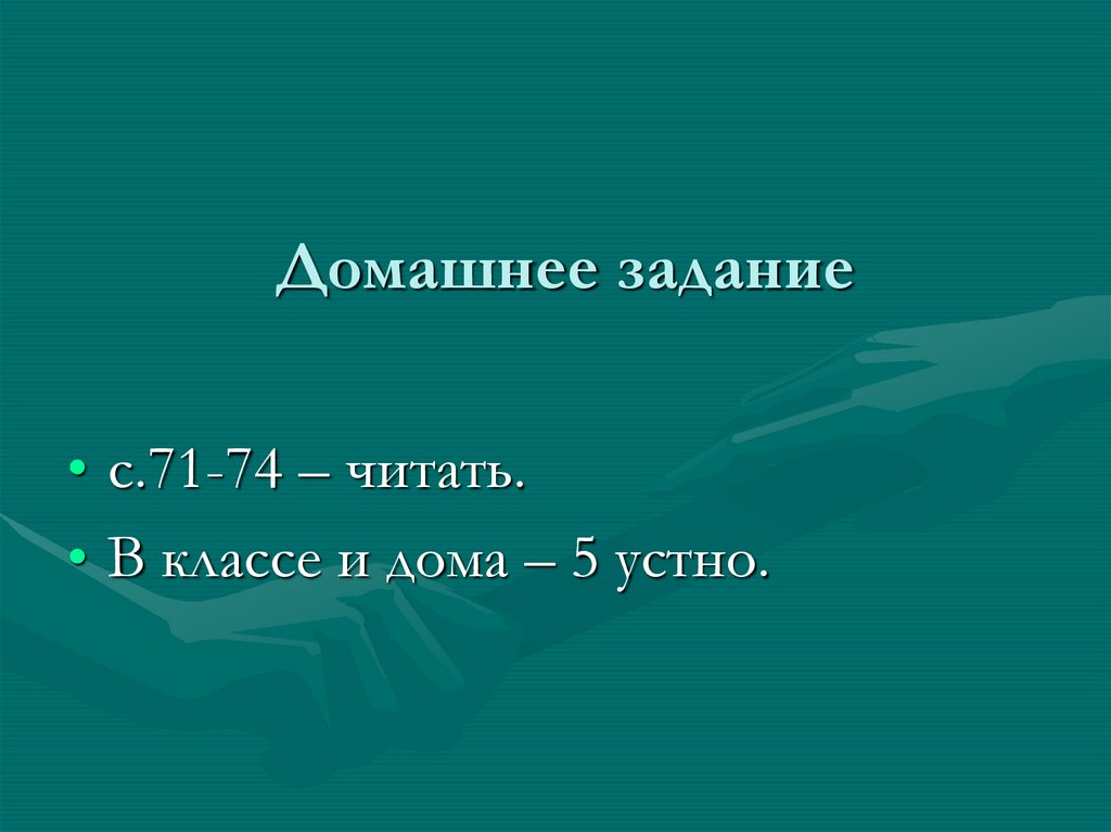 • с.71-74 – читать.• В классе и дома – 5 устно.