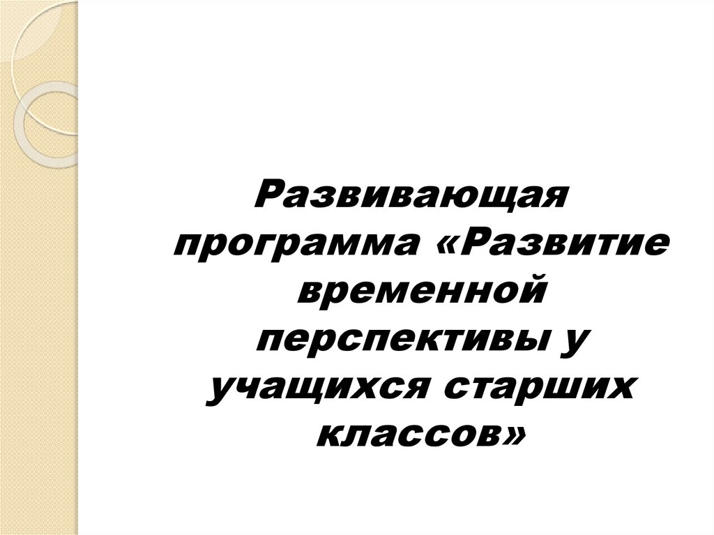 Развивающая программа «Развитие временной перспективы у учащихся старших классов»