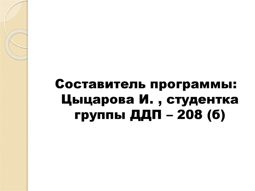 Составитель программы:Цыцарова И. , студентка