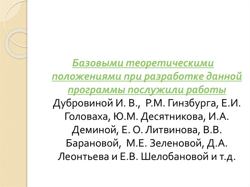 Дубровиной И. В., P.M. Гинзбурга, Е.И.