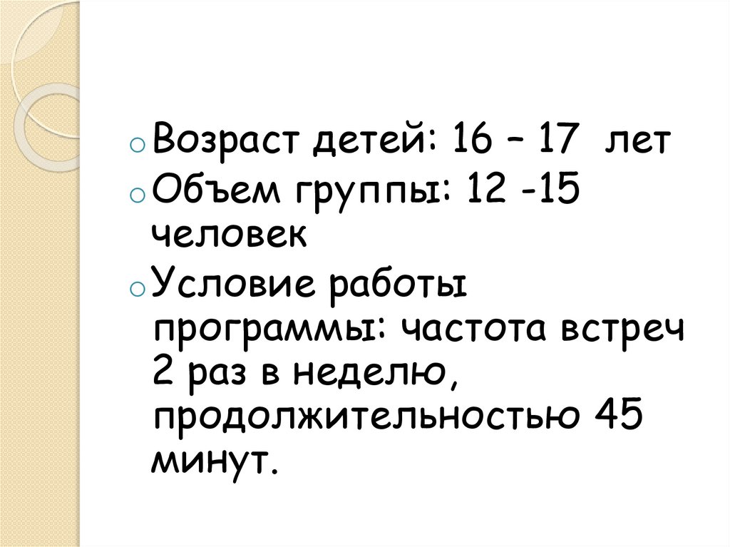 o Возрастдетей: 16 – 17 лет