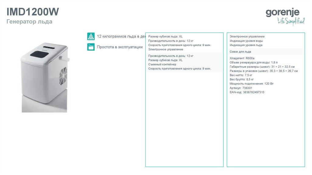 12 килограммов льда в деньРазмер кубиков льда: XL