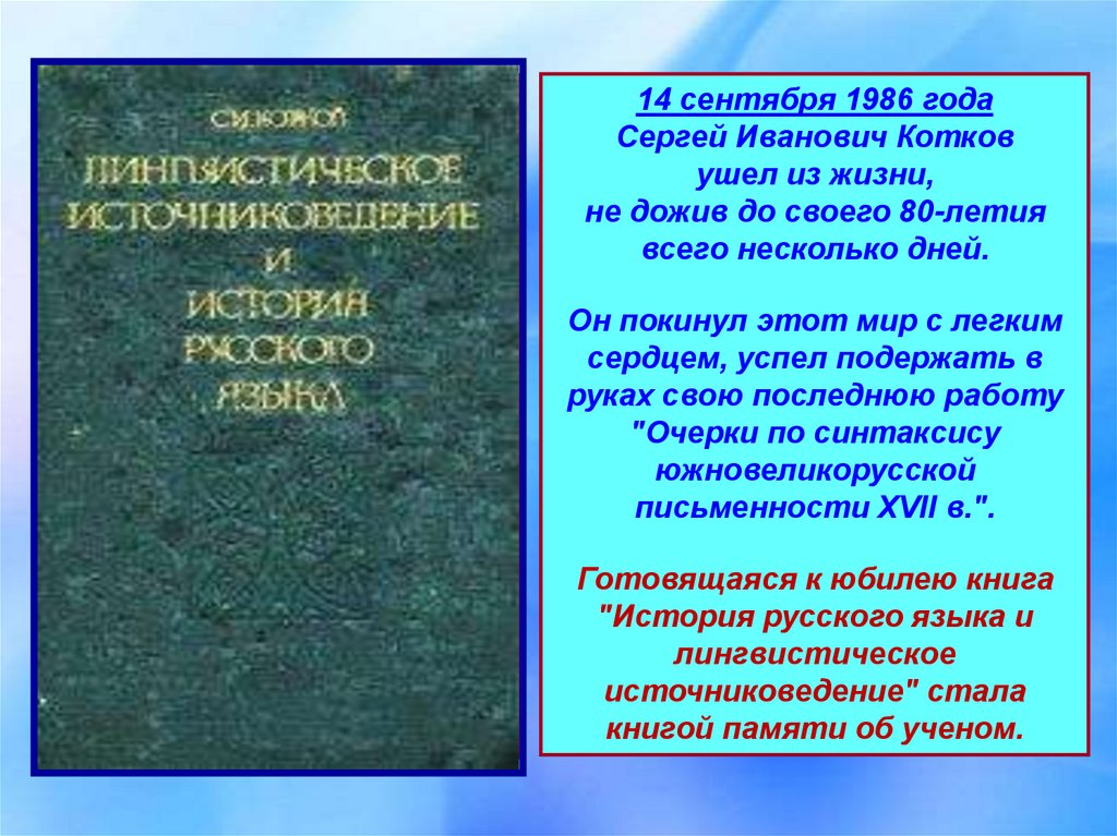 Потанин С. Исследователь истории русского языка С.И. Котков: жизнь и деятельность// http://ligaivanovo.narod.ru/potan07.htm