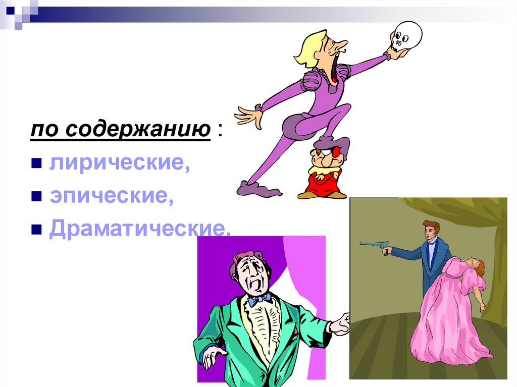 драматический - трагедия, комедия;