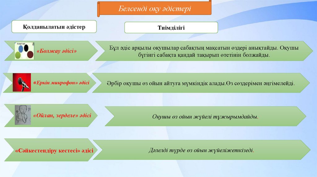 Белсенді оқу әдістеріҚолданылатын әдістер