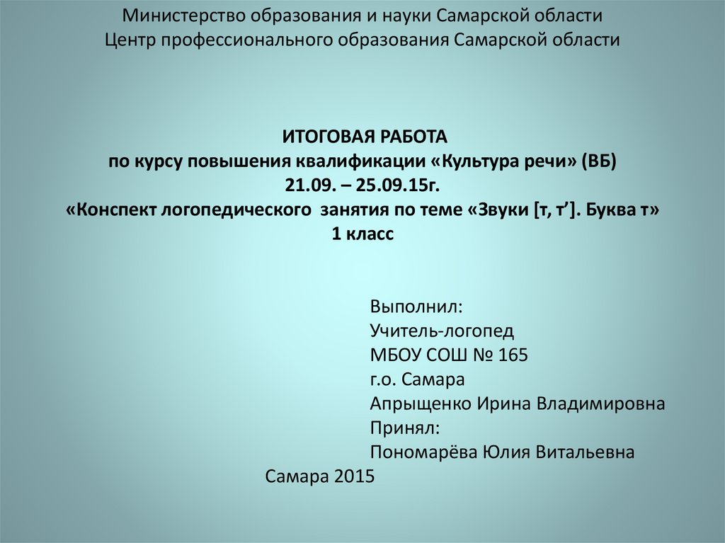 Министерство образования и науки Самарской областиЦентр профессионального образования Самарской области