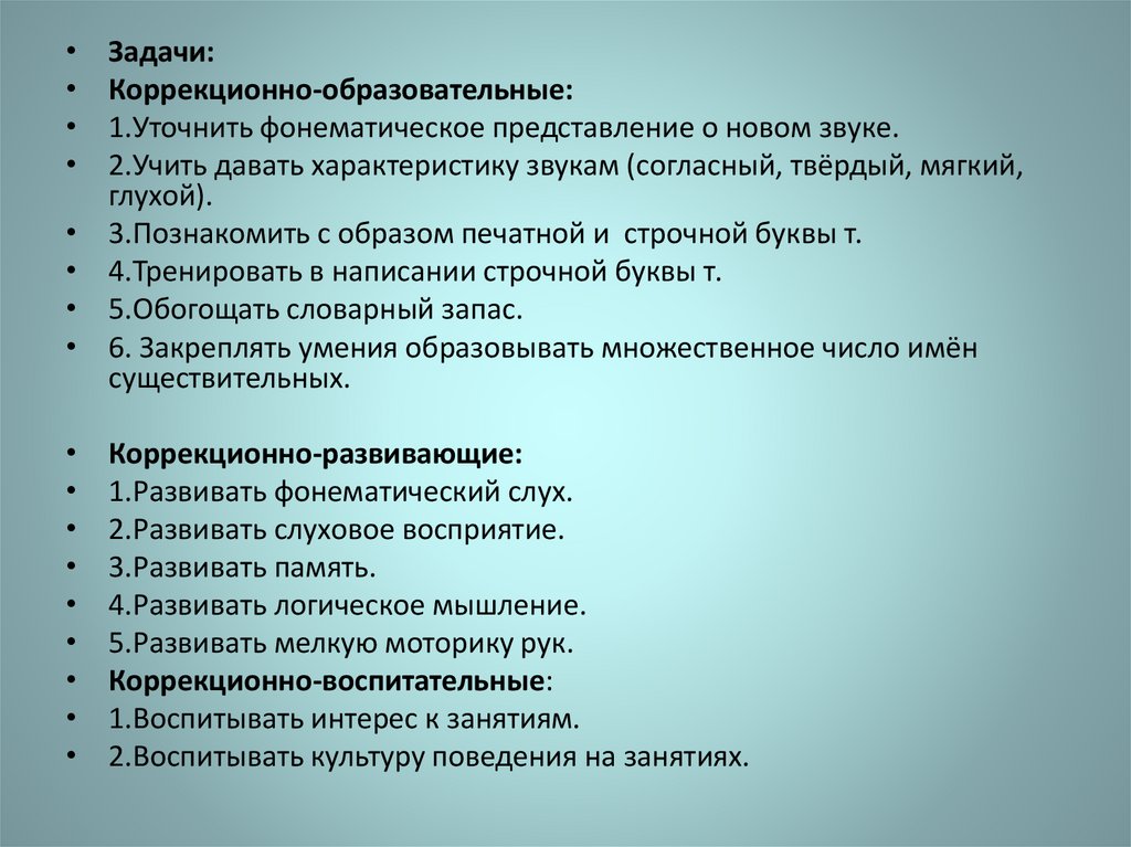 2. Цель: познакомить со звуками [т, тʼ] и буквами Т т.