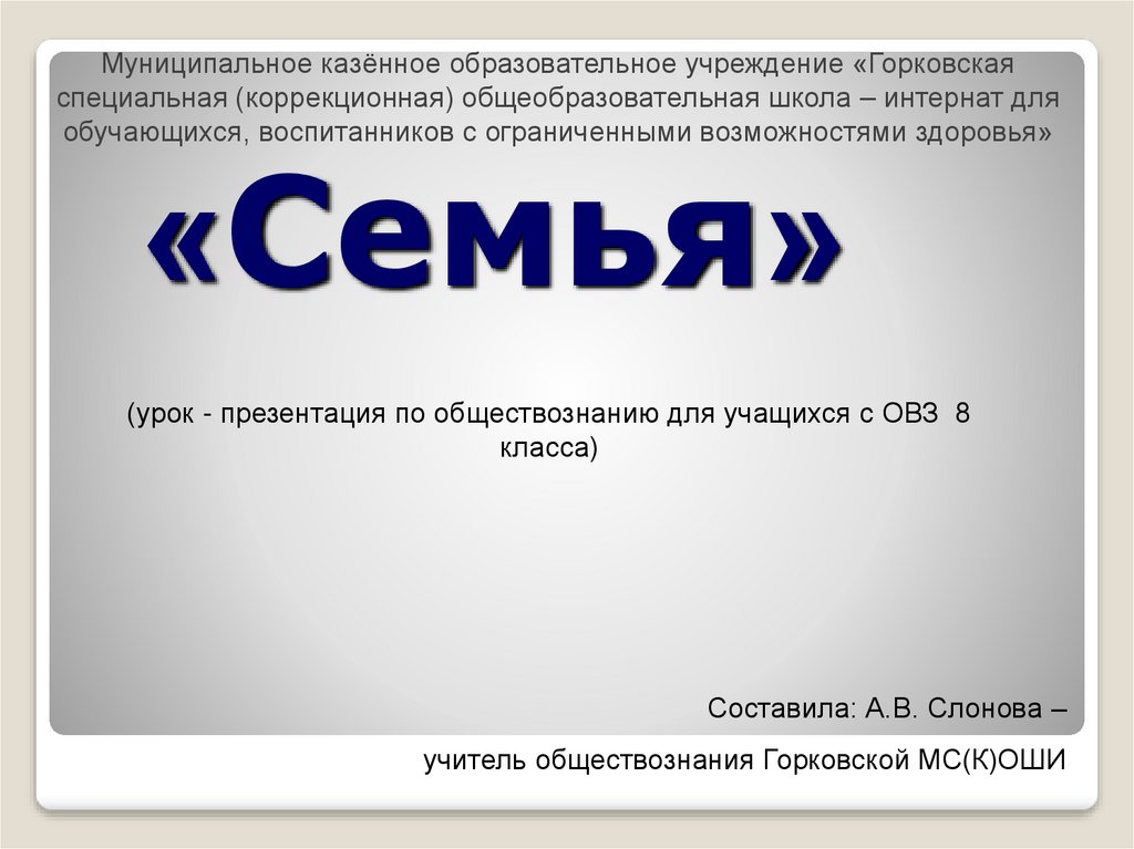 Семья (урок-презентация по обществознанию для учащихся с ОВЗ 8 класса)