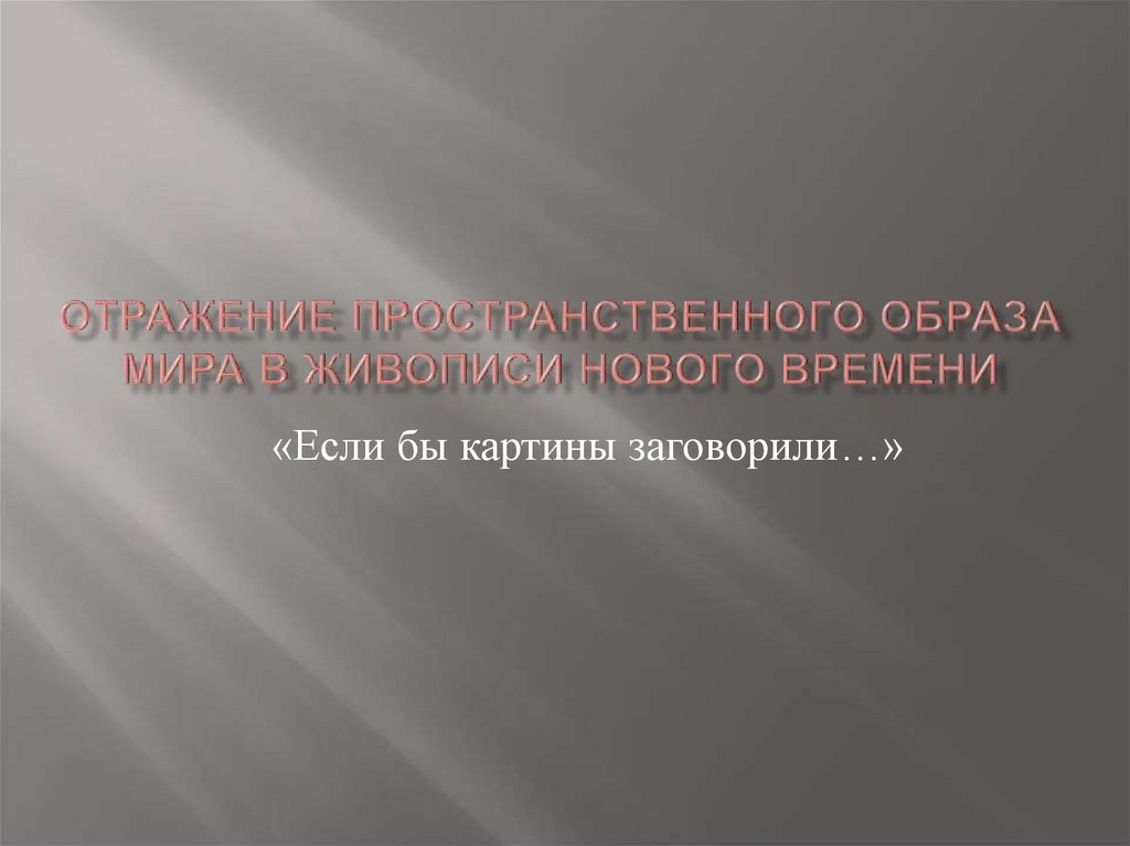 Отражение пространственного образа мира в живописи Нового времени «Если бы картины заговорили…»