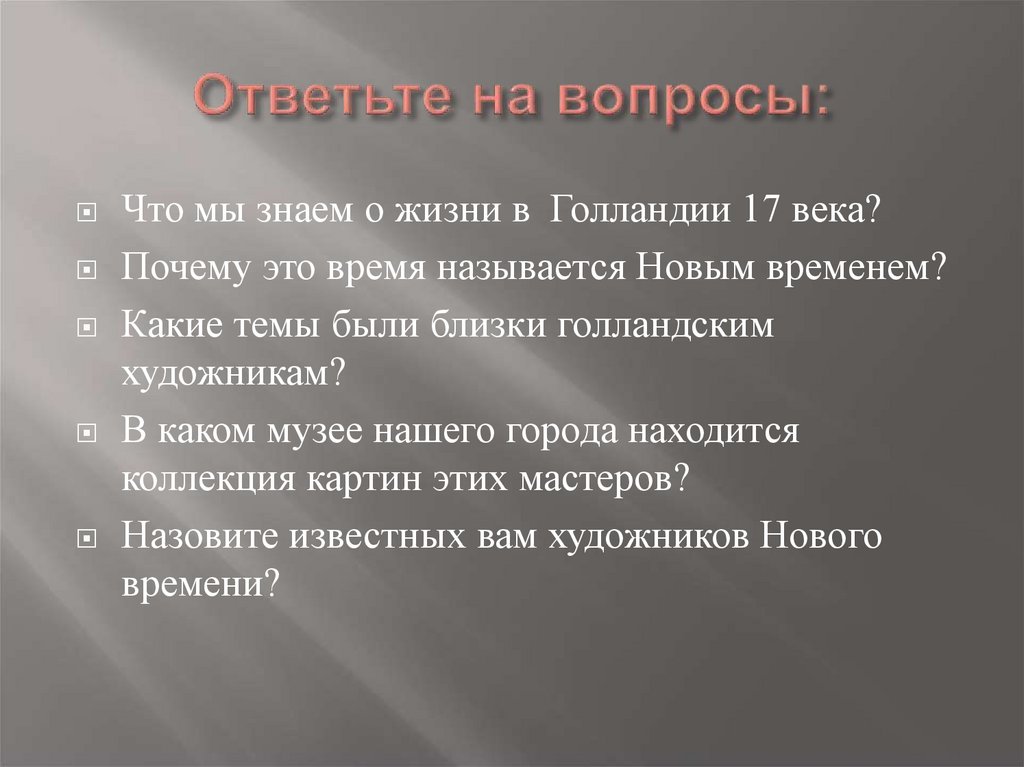 Что мы знаем о жизни в Голландии 17 века?Почему это время называется Новым временем?