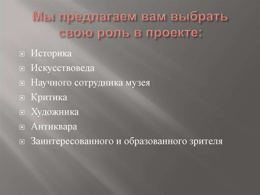 7. Мы предлагаем вам выбрать свою роль в проекте: