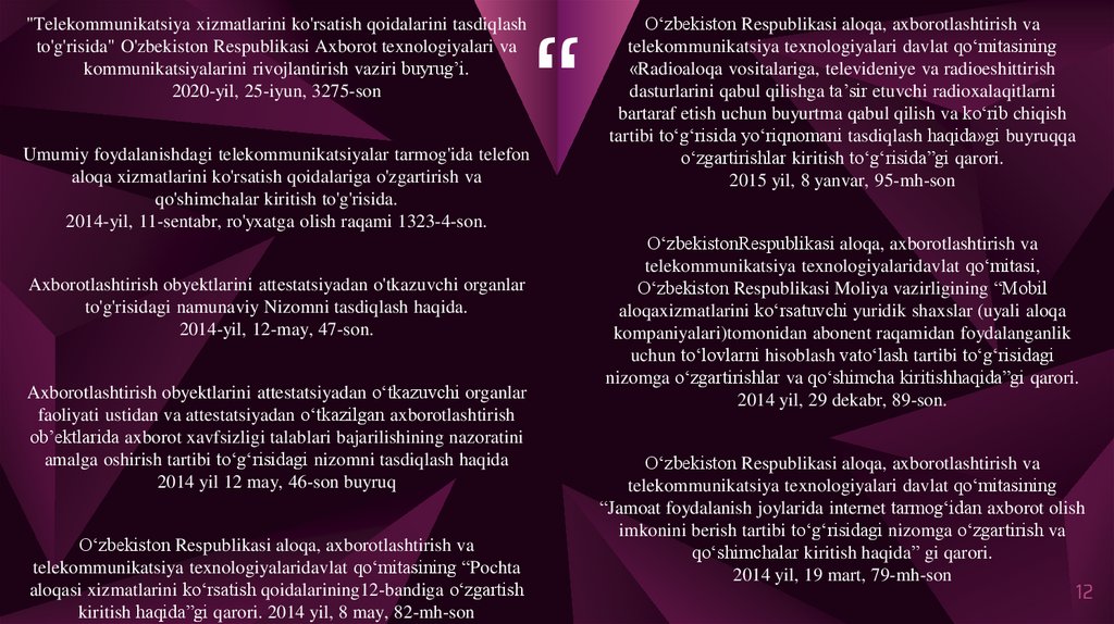aloqasi xizmatlarini ko‘rsatish qoidalarining12-bandiga o‘zgartish