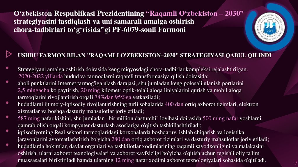 samarali amalga oshirish choratadbirlari to‘g‘risida”gi PF-6079-sonli